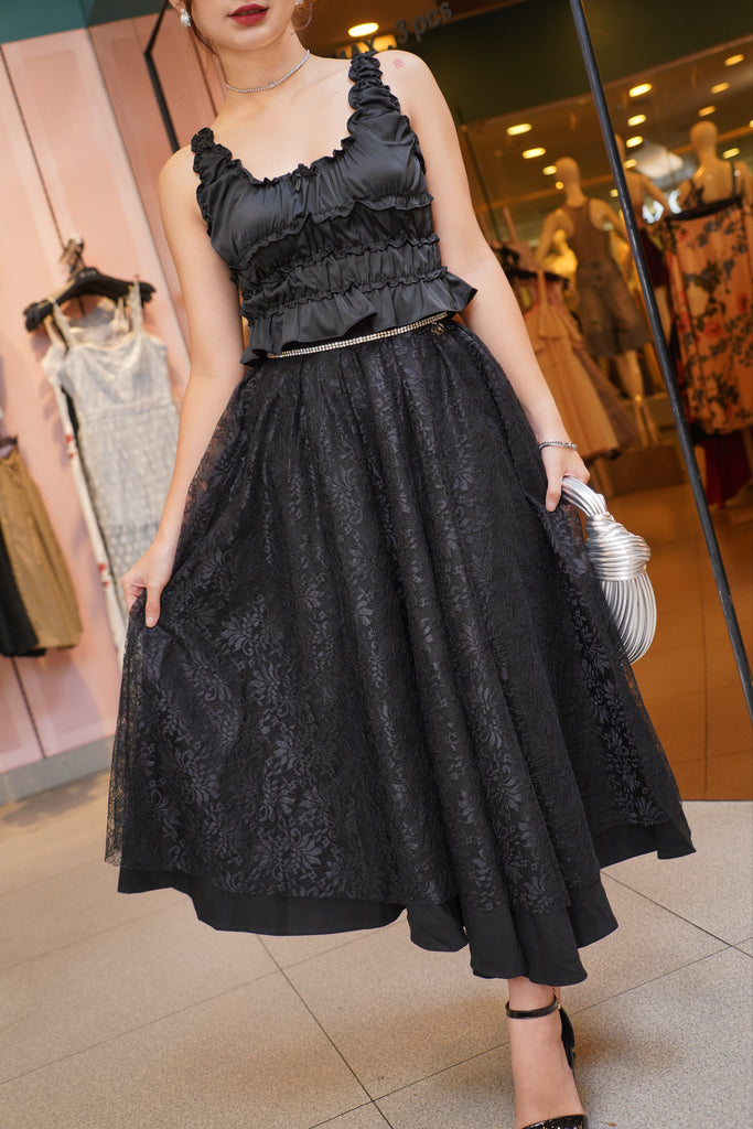 Flare Lace Circle Skirt in Black