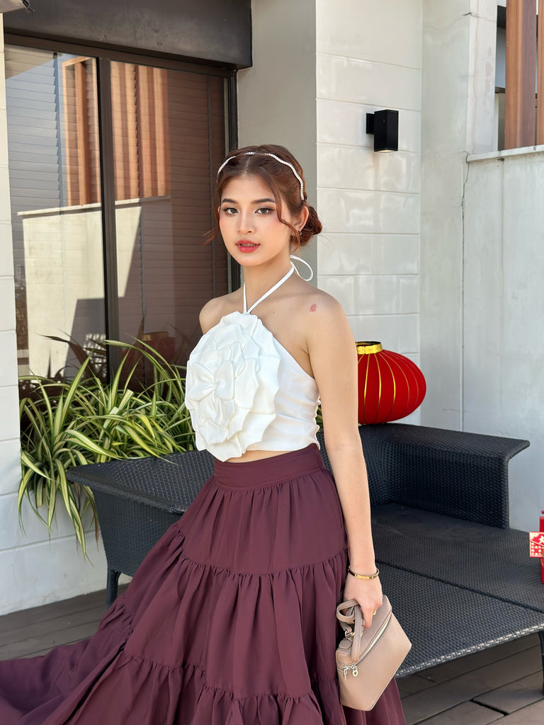 3D Flower Strap Top In White