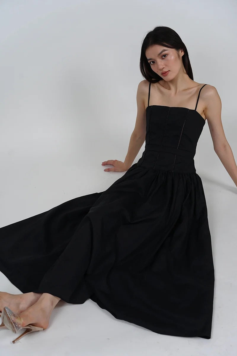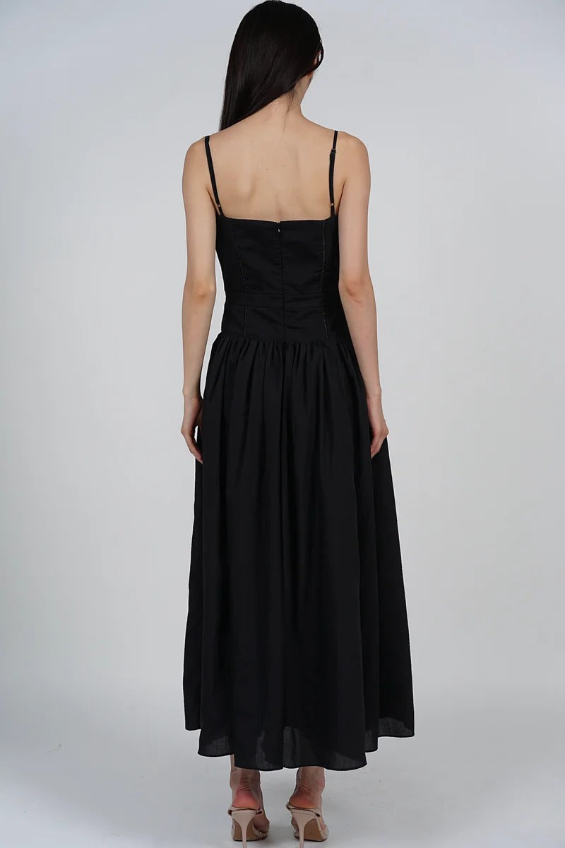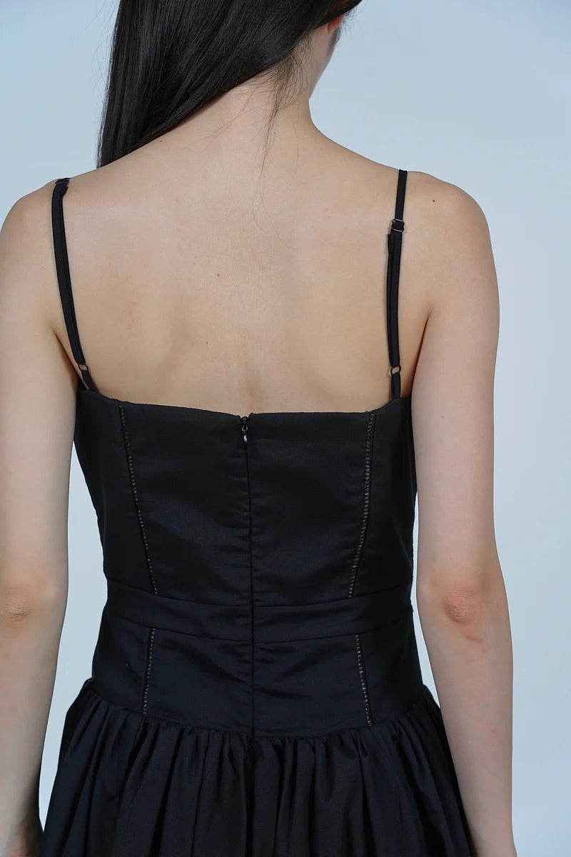 Front: Sweetheart neckline, thin straps, fitted bodice, gathered skirt and flowy silhouette